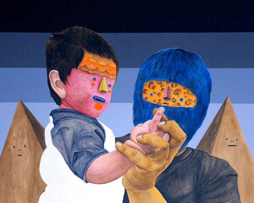 What I particularly like about this artists work is the idea of creating a "dialogue" through his artwork, representing something. In this case it is built around the idea of illegal immigration and visual portrayal of memories. However I can also link this to my 'mask' idea with my project as the choice to have clearly painted and shaped human figures with abstracted faces creates a certain reaction out of me (a mixture of uncomfortableness and intrigue) which i think is the ind of thing I will want to draw from people when I make my own work. I think this is not only down to the physical abstraction of the face, but use of varying textures and patterns of the composition of the face and facial features, including the juxtaposition of geometrical shapes in odd and unrealistic sizes to shock and stand out.