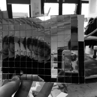 The shots I took today on my phone using a basic "mono" black and white filter on the device very incredibly effective. I stuck a set of mirror tiles to a medium sized hand held mirror, and using two pieces of masking tape on each end, distorted the tiles inwardly therefore distorting the image being reflected by them. The most effective shots were taken when the mirror was held on a vertical or horizontal axis, as photos taken when the mirror was at random angles weren't as clear and tended to be too distorted or blend in with the surroundings.